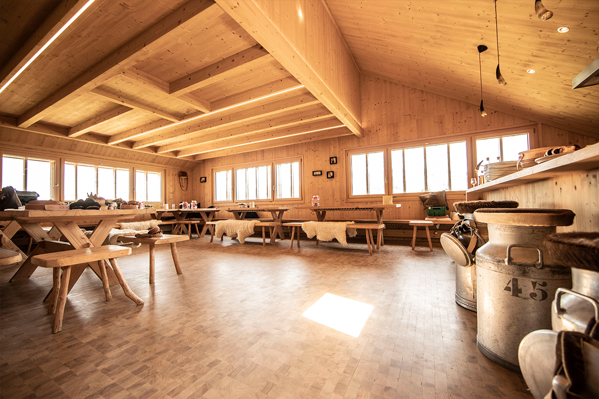 Der Ort, um abzuschalten und Zeit gemeinsam zu geniessen. Lassen Sie die Seele baumeln nach einer Führung und entdecken Sie die regionalen Köstlichkeiten. Der Ort für den perfekten Ausklang! Heimelig eingerichtet und aus Hölzern aus unseren eigenen Wäldern erbaut. Sönd willkomm!